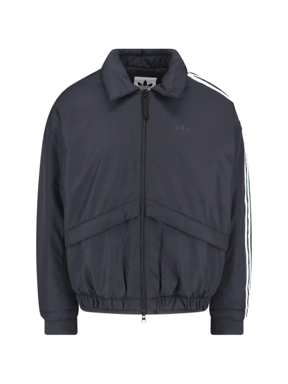 stripe bomber jacket Highlights - Black - Point collar - Zip fastening - Three stripes - Internal zip pocket - Elasticated hem Imported Composition Fabric 100% Washing instructions Read Manufacturer Guidelines