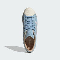 Denim adidas Superstar shoes with additional jeans-inspired detailing. What's something that's almost guaranteed to be in every closet? Denim. And whether that's true or not for you, it's about to 100% be true with these adidas Superstar 82 shoes. The iconic silhouette gets done up with a real denim upper, and goes even further with stitched detailing throughout to mimic chain-stitching on truly premium denim silhouettes. The metal eyelet on the top is just like the rivet on a pair of jeans, bringing the design full circle. Details - Regular fit - Lace closure - Denim upper - Leather lining - Rubber outsole - Imported - Product code: JH5589 - Product color: Supplier Colour / Pink Tint / Cream White