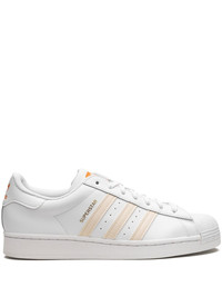 Superstar "Citrus" sneakers The iconic adidas Superstar sneakers are released in a white and zingy orange combination, dubbed "Citrus". Original features remain in the protective shell toe, decorative 3 Stripes logo appliqued on the sides walls and a signature trefoil logo stamped on the heels. Underneath, the herringbone-pattern rubber sole provides all-important comfort and grip. Highlights - White/citrus orange - Calf leather - Signature 3-stripes logo - Signature trefoil logo detail - Round toe - Signature shell toe - Front lace-up fastening - Branded insole - Flat rubber sole - These styles are supplied by a premium sneaker marketplace. stocking only the most sought-after footwear, they source and curate some of the most hard to find sneakers from around the world. Imported Composition Leather 100%