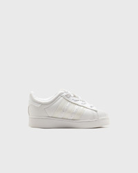 From the court to the playground: the adidas Superstar is a true classic – now available for little ones too. With its signature rubber toe cap and leather upper, this mini sneaker brings retro vibes to children's feet. The highlight: LED lights with an equalizer effect integrated into the 3-Stripes. Three light modes provide fun and style – controllable via a button on the side. - Elastic laces - Velcro straps - Synthetic upper material - Textile lining - Rubber outsole Article number: JQ6418 Gender: men,women,kids Color: FTWWHT/FTWWHT/FTWWHT Material: 30% Rubber, 70% Synthetic/Textile