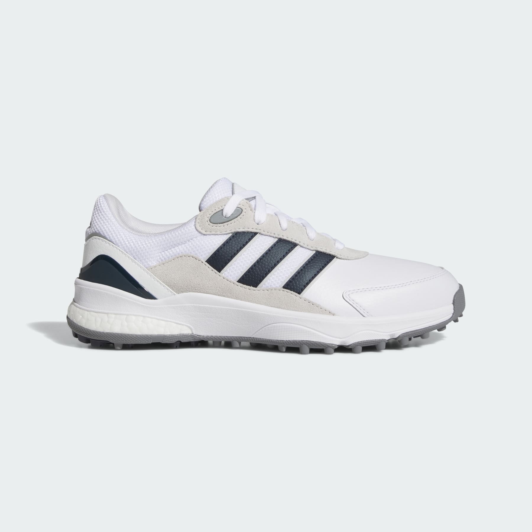 Spikeless golf shoes with Boost, made in part with a blend of recycled and renewable materials. Put comfort first with these spikeless golf shoes. Their running shoe-inspired build energizes every step with an adidas BOOST midsole, while a leather and textile upper provides a sporty look and feel. A Traxion outsole offers all-direction grip in for a solid stance. By choosing recycled, we are able to reuse materials that have already been created, which helps to reduce waste. Renewable materials choices will help us to remove our reliance on finite resources. Our products made with a blend of recycled and renewable materials feature at least 20% total of these materials. Details - Regular fit - Lace closure - Leather and textile upper - Textile lining - BOOST midsole - Traxion outsole - Contains a minimum of 20% recycled and renewable content - Imported - Product code: JI4028 - Product color: Cloud White / Collegiate Navy / Grey One