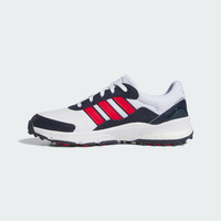 Spikeless golf shoes with Boost, made in part with a blend of recycled and renewable materials. Put comfort first with these spikeless golf shoes. Their running shoe-inspired build energizes every step with an adidas BOOST midsole, while a leather and textile upper provides a sporty look and feel. A Traxion outsole offers all-direction grip in for a solid stance. By choosing recycled, we are able to reuse materials that have already been created, which helps to reduce waste. Renewable materials choices will help us to remove our reliance on finite resources. Our products made with a blend of recycled and renewable materials feature at least 20% total of these materials. Details - Regular fit - Lace closure - Leather and textile upper - Textile lining - BOOST midsole - Traxion outsole - Contains a minimum of 20% recycled and renewable content - Imported - Product code: JH6269 - Product color: Cloud White / Pure Ruby / Collegiate Navy
