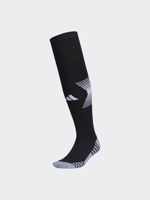 Lightweight socks with compression and sweat-wicking yarn. Play to your potential in these adidas soccer socks. Moisture-wicking yarn keeps feet dry during high-intensity scrimmages and games. The lightweight design allows for optimal ball touch. Arch and ankle compression provide extra support. Details - 95% polyester (recycled), 5% natural latex rubber - Lightweight construction - Reinforced footbed - Arch and ankle compression - Mesh panels - Moisture-wicking yarn - NCAA compliant - Imported - Product code: GC3216 - Product color: Light Grey / White