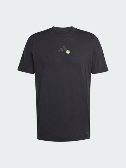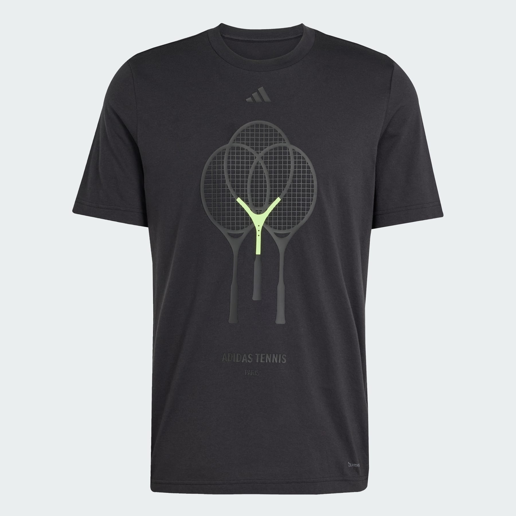 An eye-catching tennis tee with CLIMACOOL to keep you cool, dry and ready. Part of an elegant adidas collection made for the world's biggest clay court tennis tournament. With a graphic on the chest showing the tools of your trade, this tee is perfect for practice sessions and hanging out. CLIMACOOL wicks and disperses sweat for cool, dry and distraction-free performance. Soft single jersey keeps you comfortable whether you're rushing the net or heading to the clubhouse bar. CLIMACOOL helps you manage sweat with materials that wick and manage sweat quickly. Its fast-dry fibers give you a fresh-skin feel. Details - Regular fit - Ribbed crewneck - 65% polyester (recycled), 35% cotton - CLIMACOOL - Soft feel - Imported - Product code: JJ1410 - Product color: Black