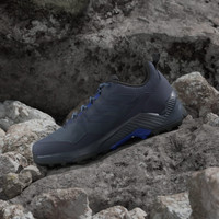 Lightweight hiking shoes made in part with recycled materials. Take in a sweeping vista. Hike to a waterfall. Cruise across town. Feel the freedom to roam in the comfort of these adidas hiking shoes. Lightweight enough for casual wear and durable enough for the trail, they feel great right out of the box. A mesh upper keeps the air circulating, while the rugged Traxion outsole secures your footing in all terrain. Made with a series of recycled materials, this upper features at least 50% recycled content. This product represents just one of our solutions to help end plastic waste. Details - Regular fit - Lace closure - Abrasion-resistant mesh upper with synthetic overlays - Gusseted tongue - EVA midsole - Textile lining - Traxion outsole - Upper contains a minimum of 50% recycled content - Imported - Product code: IH1165 - Product color: Shadow Navy / Shadow Navy / Semi Lucid Blue