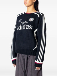 three-stripe logo sweater Highlights - Black - Three-stripe detail - Logo knit - Crew neck - Long sleeves - Ribbed cuffs Imported Composition Acrylic 100%