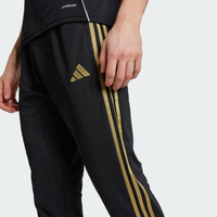 Up your style game in Tiro pants made with recycled materials. Bring your beautiful game everywhere you go. These Tiro 25 Essentials pants from adidas take their lead from soccer training apparel to offer a sporty look and comfortable feel. AEROREADY controls moisture to keep you dry, while zip pockets securely stow must-haves. With their smooth fabric and bold style, these track bottoms will quickly become first pick from your wardrobe. This product is made with 100% recycled materials. By reusing materials that have already been created, we help to reduce waste and our reliance on finite resources and reduce the footprint of the products we make. Details - Regular fit - Elastic waist with drawcord - 100% polyester (recycled) - AEROREADY - Zip pockets - Imported - Product code: KA0583 - Product color: Black / Dark Football Gold