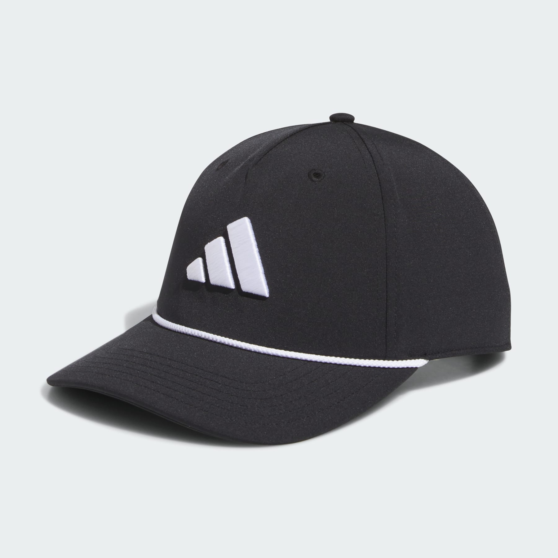A retro golf cap made in part with recycled materials. Add a touch of retro style to your golf uniform with this adidas golf ball cap. An embroidered logo and a classic top detail define its style. Adjust the snapback closure for a just-right-fit and you're ready to drive and putt your way up the leaderboard. This product is made with at least 50% recycled materials. By reusing materials that have already been created, we help to reduce waste and our reliance on finite resources and reduce the footprint of the products we make. Details - One size fits most - 97% polyester (recycled), 3% elastane - Pre-curved brim - Adjustable snapback closure - Five-panel construction - 3 Bar Logo puff embroidery - Imported - Product code: IM9190 - Product color: Black