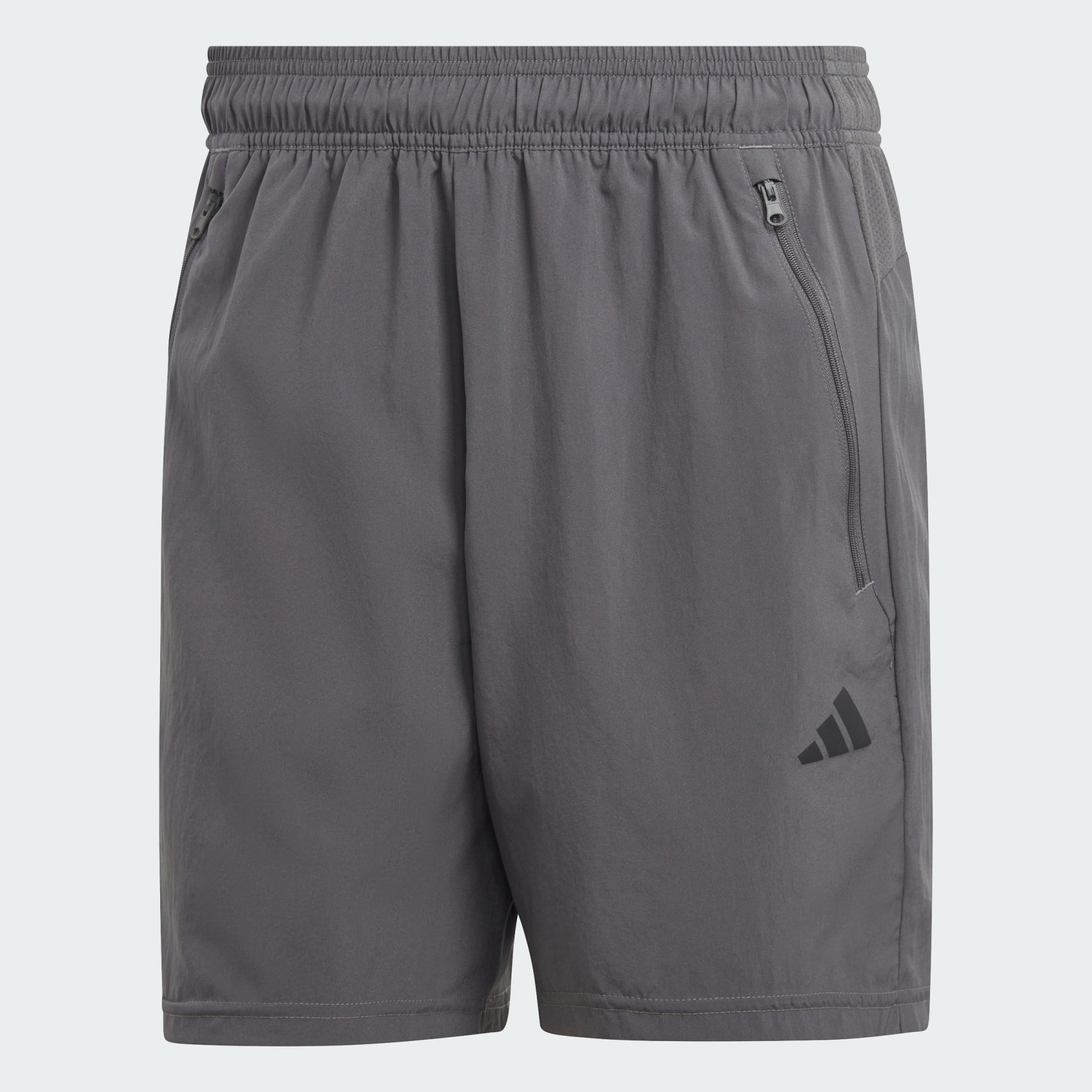 Versatile training shorts made with recycled materials. This pair of adidas training shorts is the one you'll want to throw in your gym bag on the day you plan to hit your PR. Lightweight woven fabric and AEROREADY keep you dry and comfortable as you dig deep for that extra squat rep. They're cut for unrestricted movement, so there's nothing holding you back. Details - Regular fit - Elastic waist with inner drawcord - 100% polyester (recycled) - AEROREADY - Front zip pockets - Imported - Product code: IC6978 - Product color: Grey Five / Black