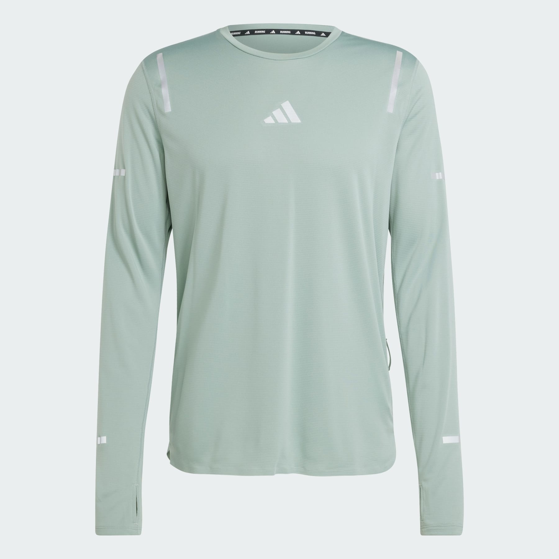 A long sleeve running tee with CLIMACOOL to keep you cool, dry and ready. Gear up for morning miles and night runs in this adidas long sleeve running tee. When the light is low, reflective details shine bright. As your pace picks up, CLIMACOOL wicks and disperses sweat for cool, dry and distraction-free performance. Thumbholes help keep sleeves in place as you swing your arms. CLIMACOOL helps you manage sweat with materials that wick and manage sweat quickly. Its fast-dry fibers give you a fresh-skin feel. This product is made with 100% recycled materials. By reusing materials that have already been created, we help to reduce waste and our reliance on finite resources and reduce the footprint of the products we make. Details - Regular fit - Crewneck - 100% polyester (recycled) - CLIMACOOL - Thumbholes - Split droptail hem - Reflective logo - Imported - Product code: JC7333 - Product color: Silver Green