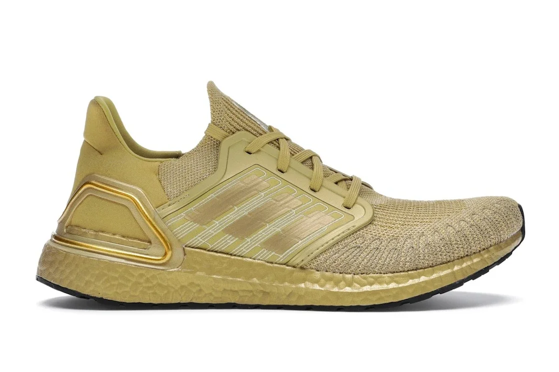 In another iteration of the agility-oriented Ultra Boost 20, the adidas Ultra Boost 20 Gold Metallic introduces a regal gold hue. This adidas Ultra Boost 20 has the adidas PRIMEKNIT technology on display on the knit mesh upper. Subtle weaving goes around the mudguard. A rubber walling encases the full width of the quarter panels, where the embroidered 3-Stripes are plastered in a series of artistic overlays. The heel has a soft neoprene surface also in gold. It receives reinforcements from a rubber wall adorned by a shiny metallic gold piping. A black rubber outsole with a webbed surface and a gold BOOST midsole with a textured feel complete the design. What makes the adidas Ultra Boost 20 Gold Metallic stand out? We love the gold monochromatic colorway in this shoe. It varies subtly, with the heel piping and adidas tongue logo appearing shiny, while the three stripes have a darker look. The shoe’s release date was November 23, 2020, and its retail price was $180. - Style EG1343 - Colorway Gold Metallic/Gold Metallic/Gold Metallic - Retail Price 180 - Release Date 2020-11-23 - Featured false - Product Line adidas Ultra Boost