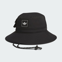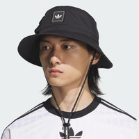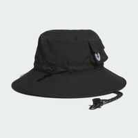 A lightweight bucket hat with adjustable chin strap. Whether exploring the wilderness or the streets of your city, you'll be made in the shade with this adidas boonie hat on your noggin. This version of the classic headwear has an extended brim and a little pocket on the side to stash something small. The chin strap adjusts with a sliding toggle. Details - 100% polyester - Extended brim - Adjustable bungee closure around crown - Gusset pocket on side - Adjustable chin strap - Imported - Product code: JJ7415 - Product color: Black / White