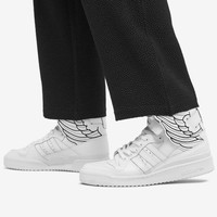 Designer Jeremy Scott is known for his unique designs – and that’s showcased through this pair of white New Wing sneakers from the designer’s ongoing partnership with adidas. The avant-garde pair are crafted from smooth leather and fit to a hi-top style – inspired by on-court styles. Signature, stand-out wings wrap the ankle, with every feather embroidered by contrasting black glossy embroidery. - Leather Uppers - Rubber Outsole - Style Code: GX9445