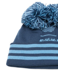 x Avavav pom pom-detail ribbed beanie hat Highlights - Blue - Ribbed knit - Striped - Turn-up brim - Pom pom detail Imported Composition Polyacrylic 100% Washing instructions Machine Wash