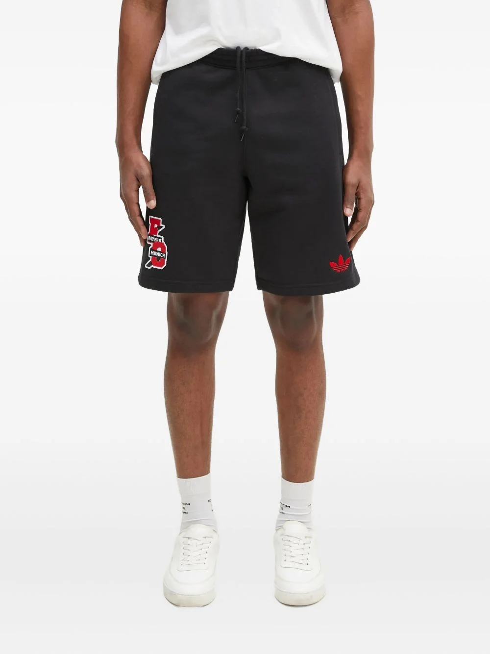 x Bayern Munich logo-embroidered shorts Highlights - Black - Embroidered logo - Drawstring fastening - Side pockets - Applique detail - Cotton Imported Composition Cotton 100% Washing instructions Read Manufacturer Guidelines