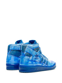 x Jeremy Scott Forum high-top "Dipped Blue" sneakers These adidas x Jeremy Scott Dipped Forum High sneakers stand out thanks to their blue design. In this collaboration, the iconic silhouette is dipped in a wax-like finish coated in a glossy, semi-tint that drips down onto the midsole. A jelly rubber sole finishes the look with comfort. Imported Composition Leather 100%