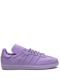x Pharrell Humanrace Samba "Purple" sneakers Pharrell Williams updates the classic adidas sneaker with an all-purple colourway. The Humanrace Samba has a low-top silhouette constructed with premium leather and is tightened up with leather laces for a distinctive look. Highlights - Lilac purple - Leather - Tonal stitching - Round toe - Front lace-up fastening - Logo-debossed tongue - Branded insole - Gum-rubber sole - These styles are supplied by a premium sneaker marketplace. stocking only the most sought-after footwear, they source and curate some of the most hard to find sneakers from around the world. Imported Composition Sole: Rubber 100% Lining: Fabric 100% Outer: Leather 100%