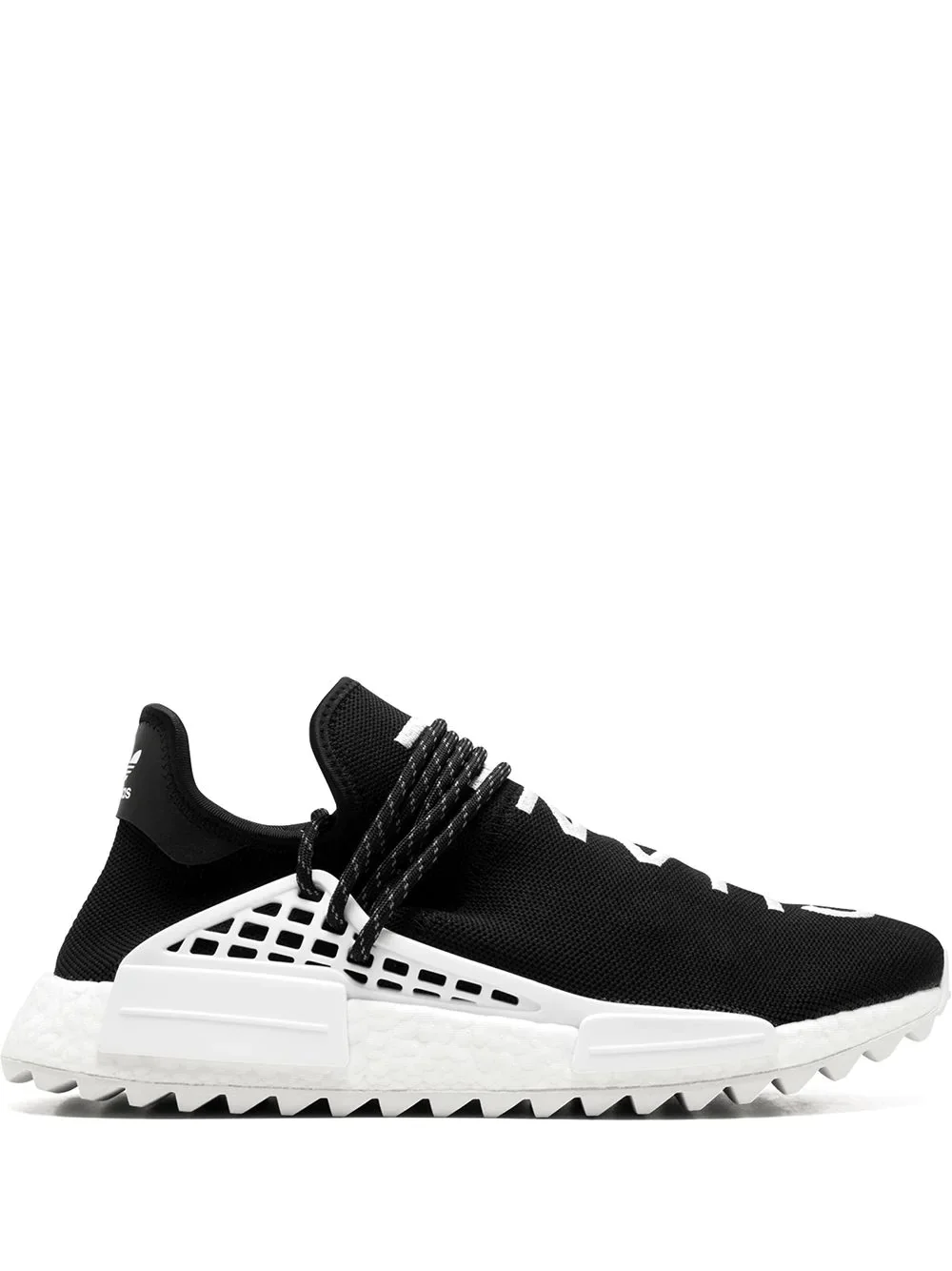 x Pharrell Williams CC Hu NMD "Chanel" sneakers In collaboration with singer-turned-designer, Pharrell Williams, Adidas presents an updated iteration of their popular NMD sneakers. Featuring a co-branded design, the style features the same easy-to-wear knitted upper as its predecessor. Highlights - Black/white - Knitted upper - Intarsia-knit logo - Round toe - Front lace-up fastening - Flat rubber sole - These styles are supplied by a premium sneaker marketplace. stocking only the most sought-after footwear, they source and curate some of the most hard to find sneakers from around the world. Imported Composition Sole: Rubber 100% Lining: Fabric 100% Outer: Nylon 100%