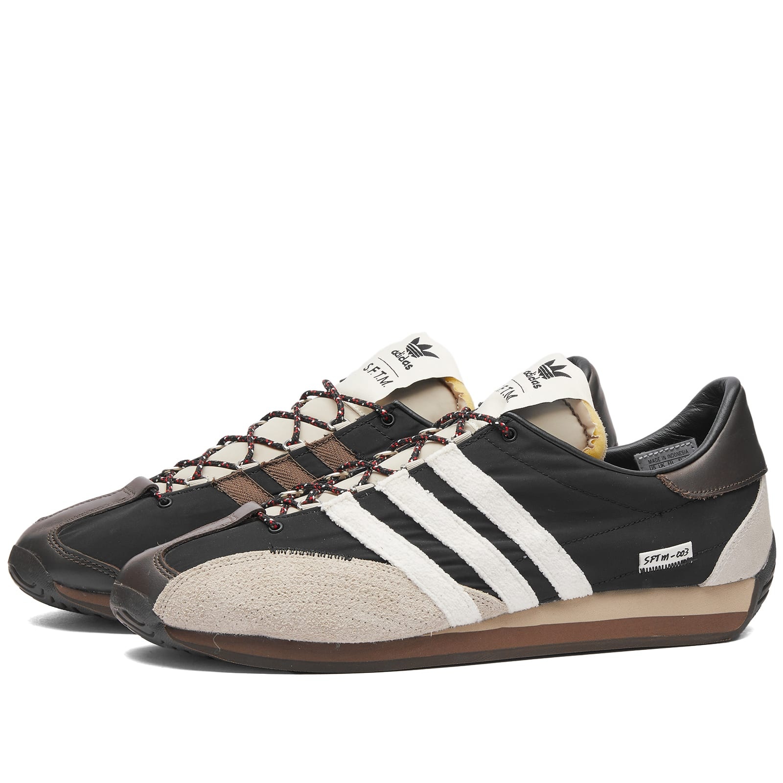 Rooted in adidas' esteemed running archive, this collaborative adidas x SFTM Country OG sneaker is designed for a modern lifestyle. First launched in 1972 for the Munich Olympics, they transformed running culture with their lightweight construction, all while retaining the coveted features from their origins: superior cushioning, a traction-focused outsole, and a low-profile design. The lightweight leather upper provides day-long comfort while co-branding on the sidewall and tongue offers an elevated aesthetic. - Leather & Textile Upper - Leather Lining - Rubber Outsole - Style Code: ID3546