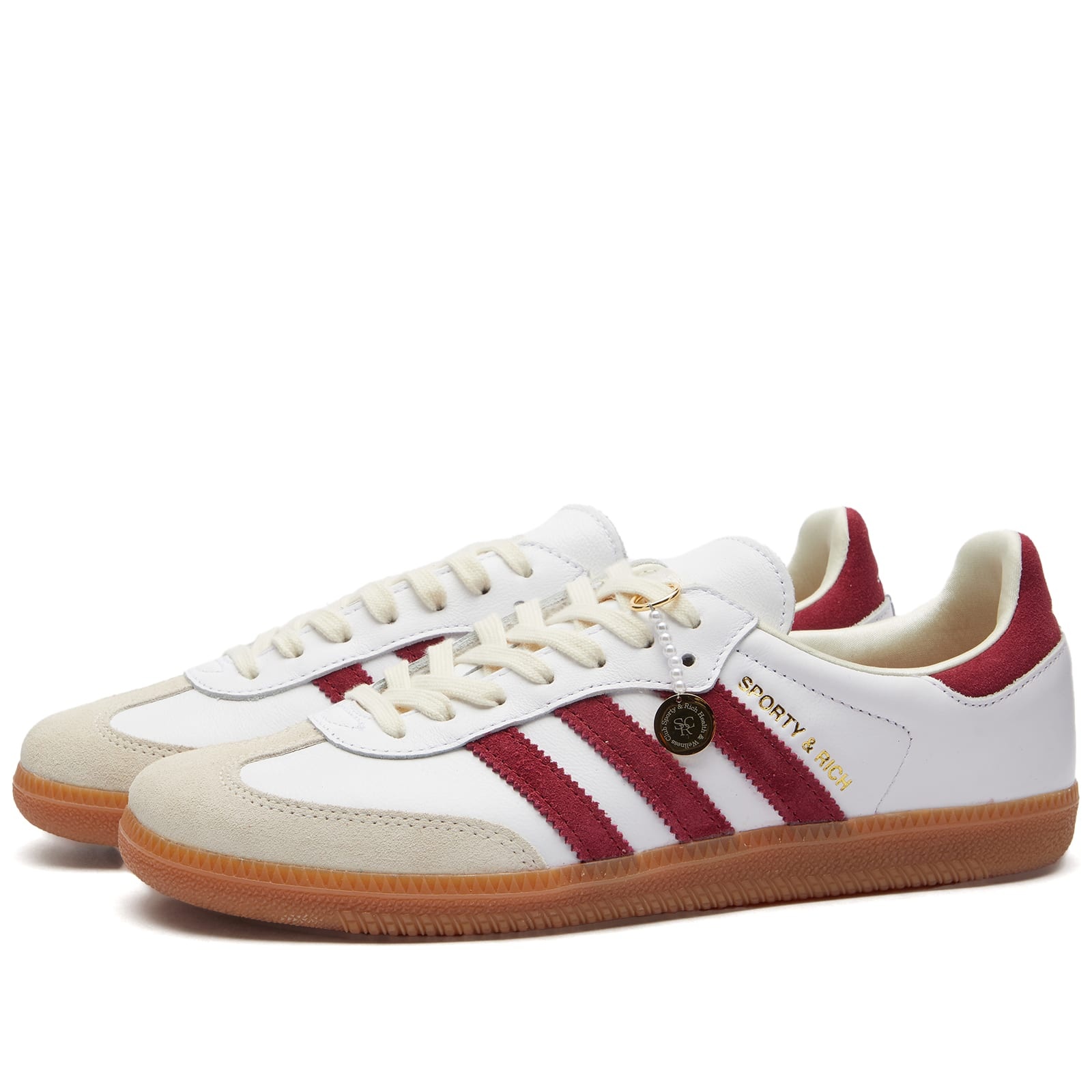 After arguably one of the collabs of this summer, Sporty & Rich now join forces with adidas to reimagine the staple Samba sneaker with a fresh autumnal aesthetic. Here, the silhouette’s key DNA is reimagined with luxury touches from Emily Oberg’s label - note the suede burgundy 3-stripes and gold foil branding - while the OG gum rubber sole rounds the look together. Consider us obsessed… again! - Leather Uppers - Suede Overlays - Rubber Outsole - Style Code: IF5660