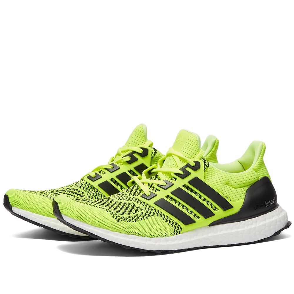 adidas brightens up your sneaker collection with this striking solar yellow and black pair of Ultraboost M’s. Made for running, they are built with boost™ for incredible energy-returning cushioning beneath your feet without adding weight or sacrificing ground feel. Breathable Primeknit offers added comfort while a rubber outsole propels you forward with every step. - Primeknit Uppers - boost™ Technology - Rubber Outsole - Style Code: S77414