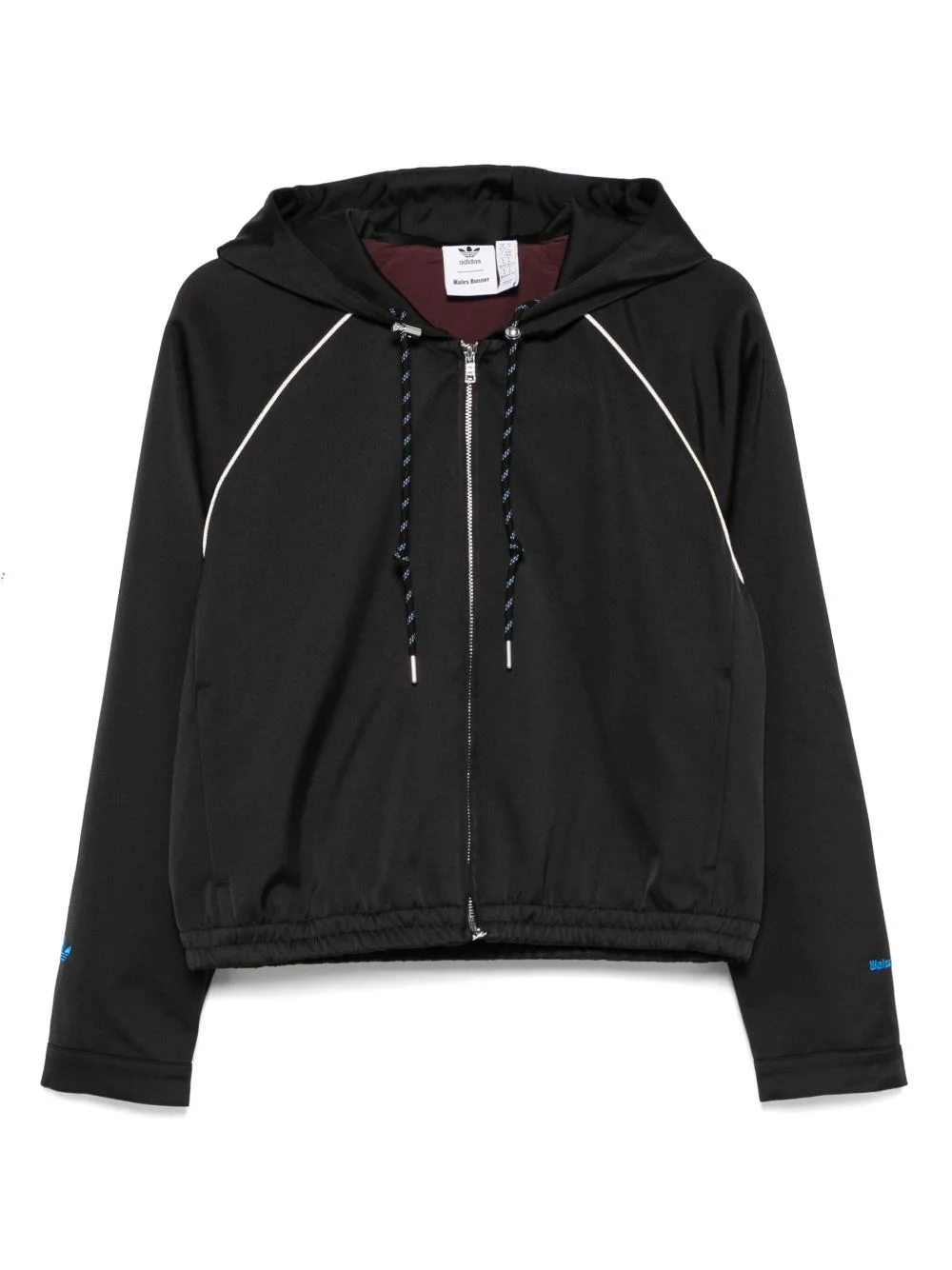 x Wales Bonner hooded jacket Highlights - Black - Front zip fastening - Two side slit pockets - Drawstring hood - Long sleeves Imported Composition Lining: Recycled Polyester 100% Outer: Recycled Polyester 100% SIZE & FIT Model measurements Height 5 ft 9 in(1.74 m) Bust/Chest 34.64 in(88 cm) Hips 36.61 in(93 cm) Waist 26.37 in(67 cm) FittingInformation Designed for a relaxed fit, this piece allows for comfort and movement when worn The elasticated hem allows for movement and a comfortable fit Made from a midweight fabric Washing instructions Machine Wash