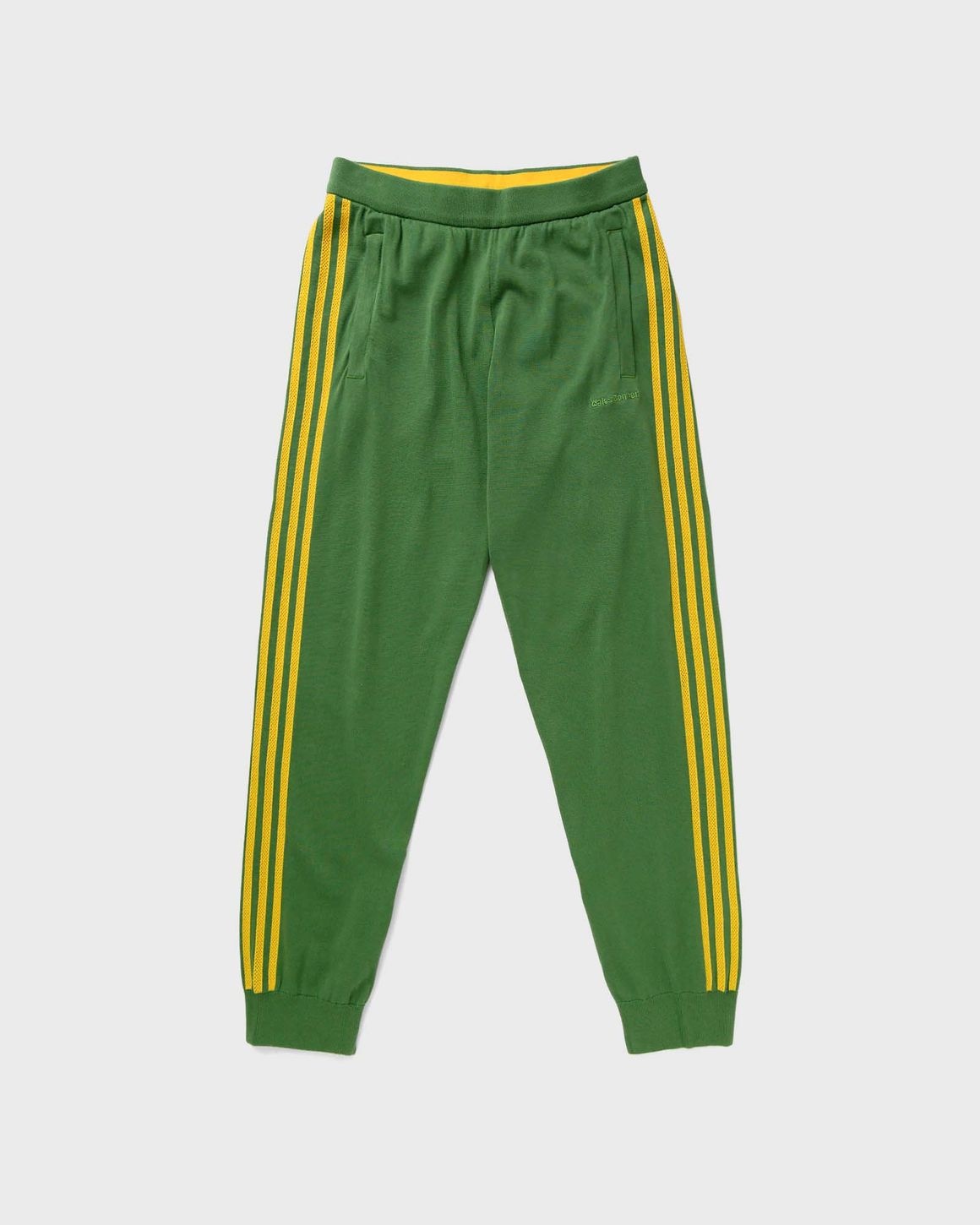 The latest collection from adidas and Wales Bonner is an ode to the serenity of long-distance runners. With refined materials and tailored details, it celebrates the joy of movement and the unwavering spirit of those who pursue their goals. Classic styling influences the aesthetic of these New Knit Track Pants. Bringing back the best of archival details, they feature a soft feel thanks to the pure cotton build. Concealed zips at the hem taper the silhouette or let it relax. - Drawcord on elastic waist - Side pockets - Ribbed cuffs - Inseam ankle zips - Wales Bonner logo Article Number: IW1176 Gender: Men Color: CREGRN Material: 100% Cotton