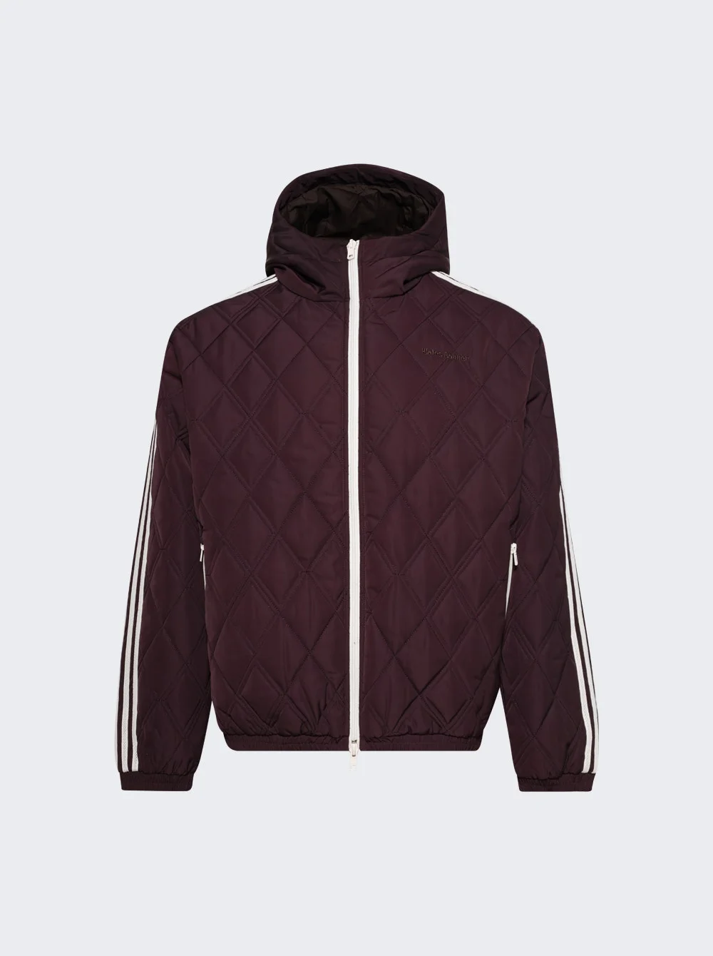Details - Part of the Wales Bonner collection, inspired by early hip-hop and dancehall culture, merging old school sportswear with luxury and quality. - Quilted zip-up hooded jacket - Crochet 3 Stripes - Side zip pockets - Argyle quilting - Embroidered Wales Bonner and Trefoil logos - Material: 100% Recycled polyester Size Information: Vendor Color Code: Brand Style: KE9956 Designer/Brand: ADIDAS