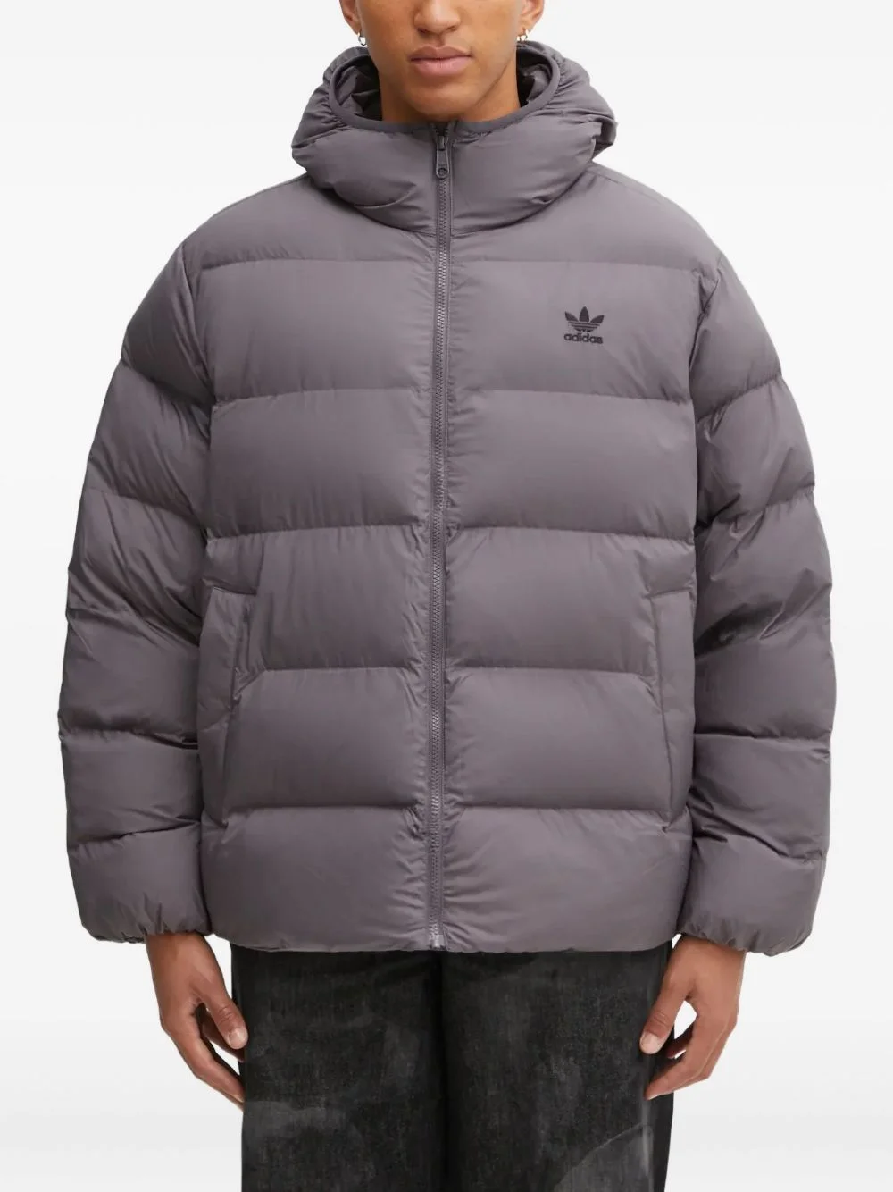 zip-fastening padded jacket Highlights - Grey - Logo detail - Zip fastening - Hooded neckline - Side pockets Imported Composition Recycled Polyester 100% Washing instructions Machine Wash