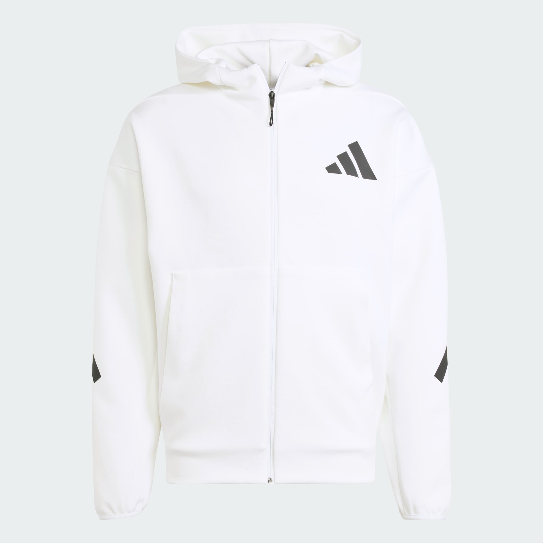 A cozy adidas Z.N.E. track jacket made in part with a blend of recycled and renewable materials. Zip up and find your focus in this adidas track jacket. The cozy three-layer doubleknit fabric helps lock in warmth, while a full-coverage hood makes it easy to block out the world when you need some "me time." When you're feeling refreshed and ready to take on the day, a matte rubber-print 3 Bar Logo reminds you that you're always connected to your community through sport. By choosing recycled, we are able to reuse materials that have already been created, which helps to reduce waste. Renewable materials choices will help us to remove our reliance on finite resources. Our products made with a blend of recycled and renewable materials feature at least 70% total of these materials. Details - Regular fit - Full zip with hood - 57% polyester (recycled), 43% cotton - Front zip pockets - Three-layer fabric - Contains a minimum of 70% recycled and renewable content - Imported - Product code: JF2443 - Product color: White