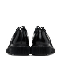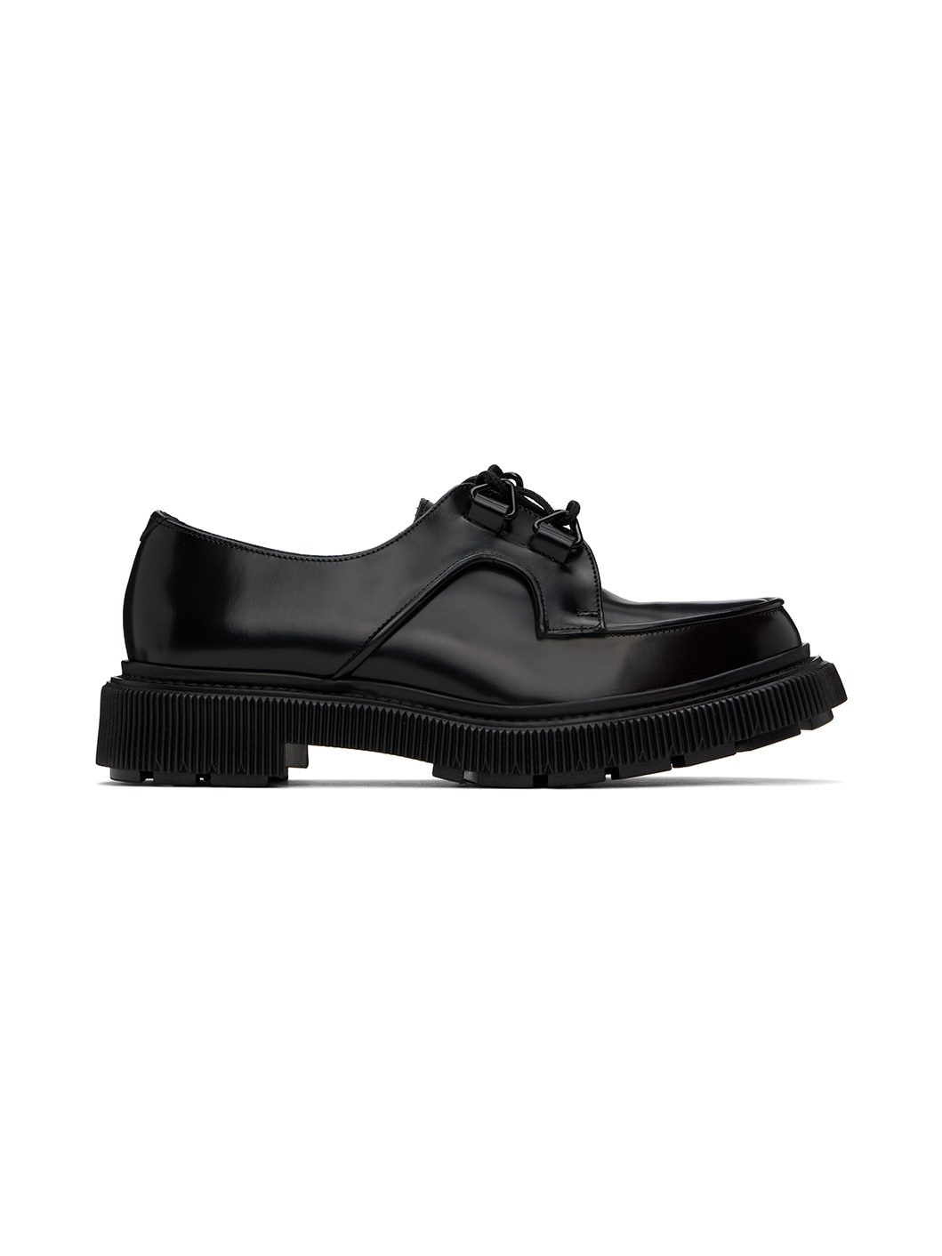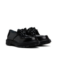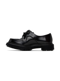 Polished leather derbys in black. · Moc toe · Lace-up closure · Logo printed at padded leather footbed · Suede and buffed leather lining · Topstitching at welt · Textured rubber midsole · Treaded rubber sole Supplier color: Black