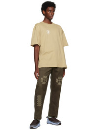 Cotton jersey T-shirt. · Rib knit crewneck · Graphic printed at chest and back · Hand-stitched tatreez embroidery at back Supplier color: Beige 100% cotton. Made in Turkey 232484M213014