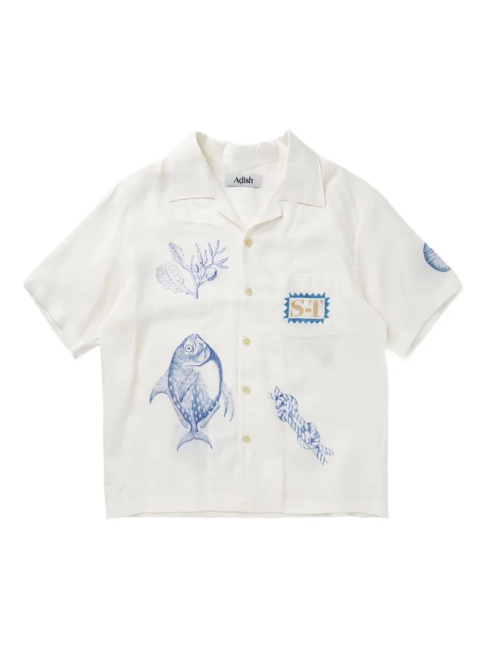 fish-print shirt Highlights - White - Fish print - Short sleeves - Button fastening Imported Composition Linen/Flax 100% Washing instructions Read Manufacturer Guidelines