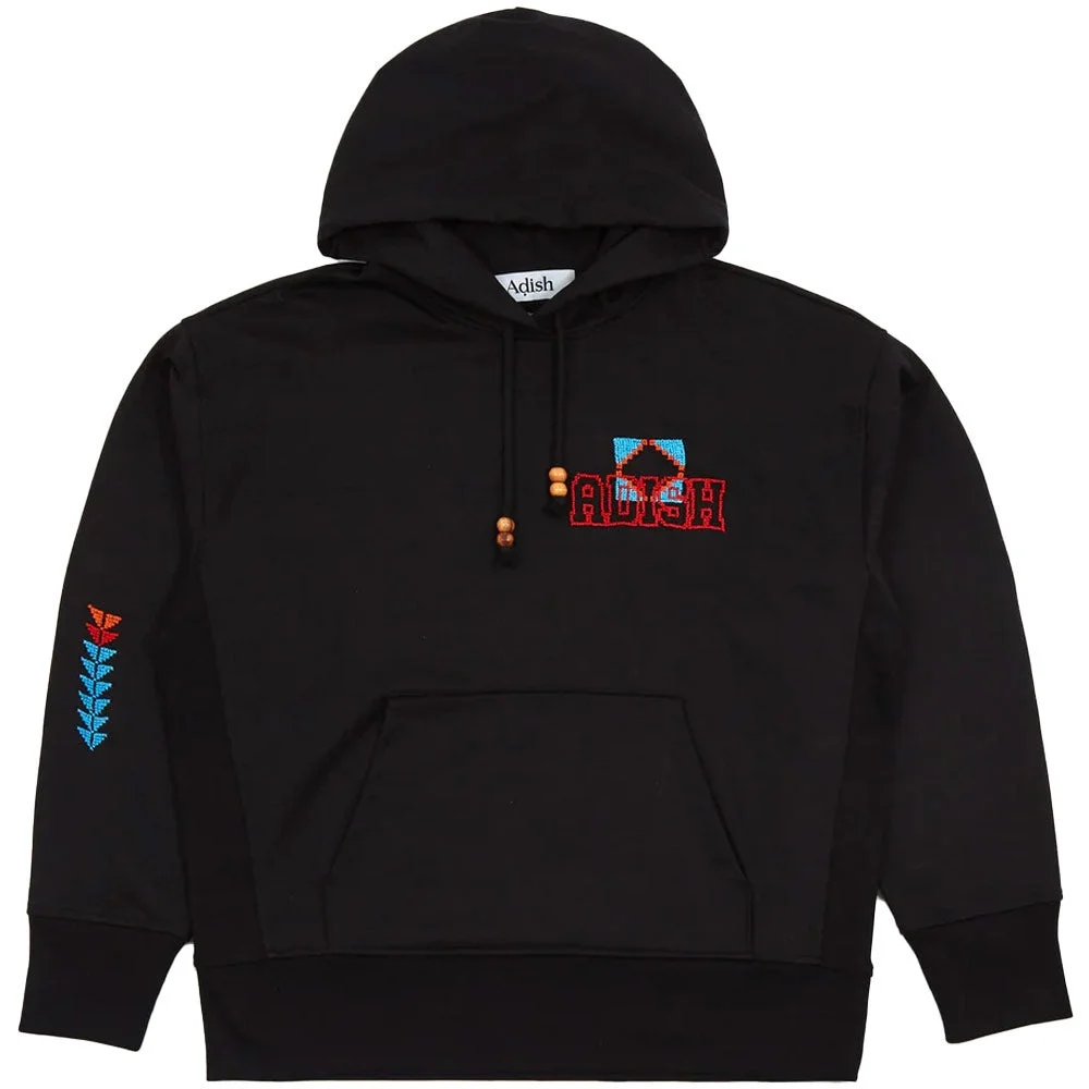 Adish | SKU: SS23-KLHSB001 Cotton French Terry Hoodie with Palestinian Hand Embroidery Detailing on the Chest and Sleeves and Hand-Crafted Beads on the Laces. 100% Cotton French Terry, Made in Turkey. Made in Turkey.