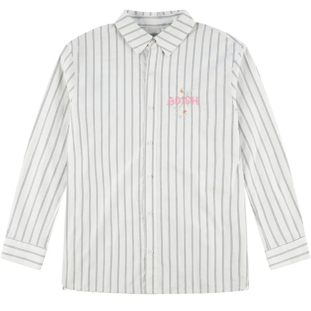 Adish | SKU: FW23-NSSW001 Cotton Poplin Long Sleeve Button Up Shirt with Palestinian Hand-Embroidery Detailin on the Chest. 100% Cotton Poplin, Made in Japan. Made in Occupied Palestine.