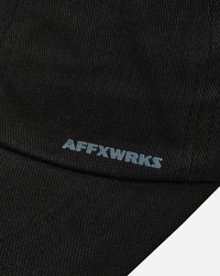 AFFXWRKS WRKS Cap Black Adjustable fit baseball cap in a 15oz brushed cotton drill with micro AFFXWRKS branding. - 100% Cotton - Six-Panel Construction - Embroidered Logo - Stitched Eyelets - Curved Brim - Adjustable Closure - Style Code: 1619 BLACK