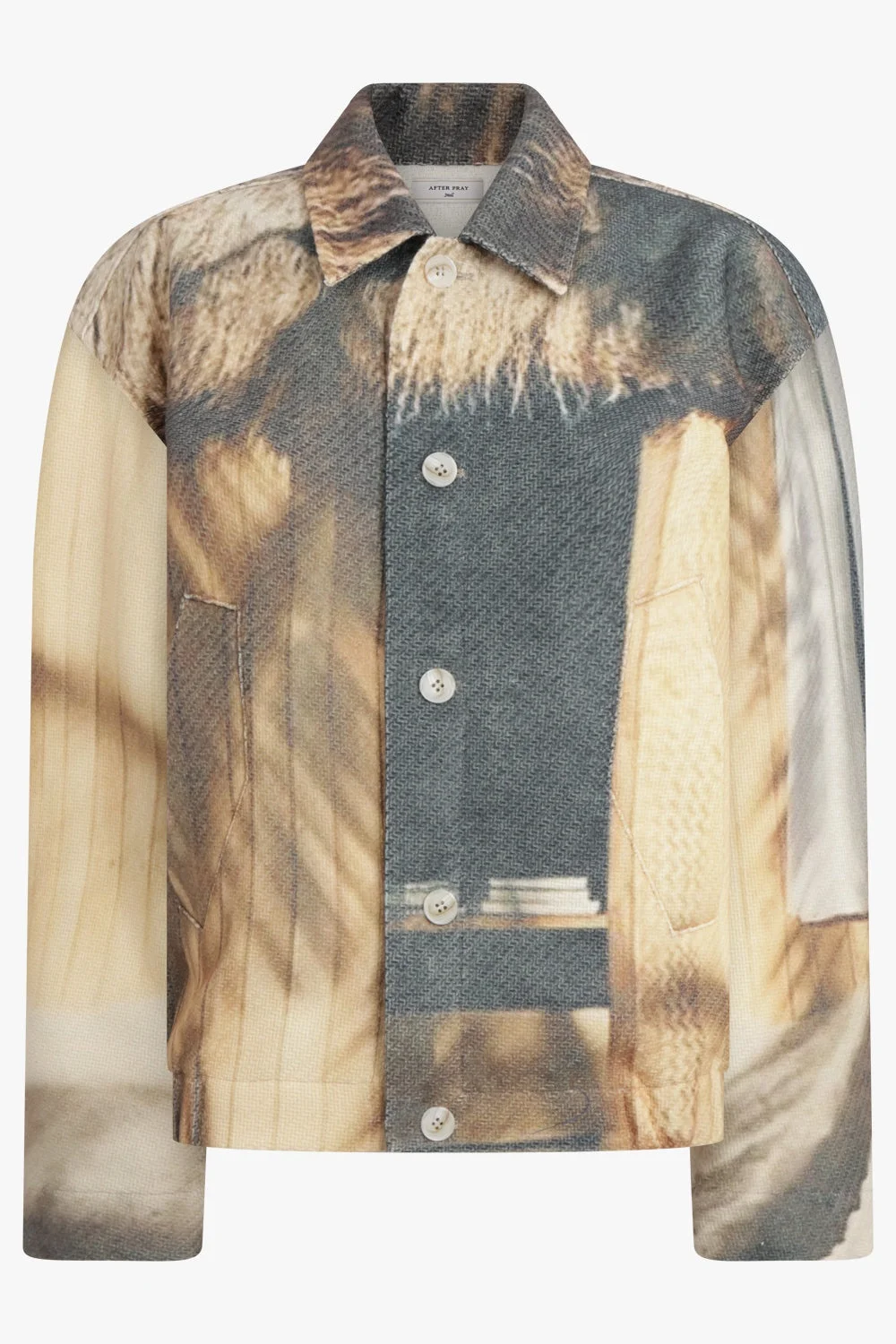 The full printed jacket boasts a stunning ocean print, complete with an adjustable hem and lined sleeves and shoulders. Fabrication: 100% polyester Made in South Korea. Size and Fit Jay: Model is 191cm/6’02” and is wearing a size M Model Measurements: Bust: 94cm, Waist: 76cm, Hips 89cm Measurements Size S: Bust 112cm, Waist 112cm, Hips 86cm, Length 63cm Size M: Bust 114cm, Waist 114cm, Hips 88cm, Length 63cm Size L: Bust 120cm, Waist 120cm, Hips 94cm, Length 63cm