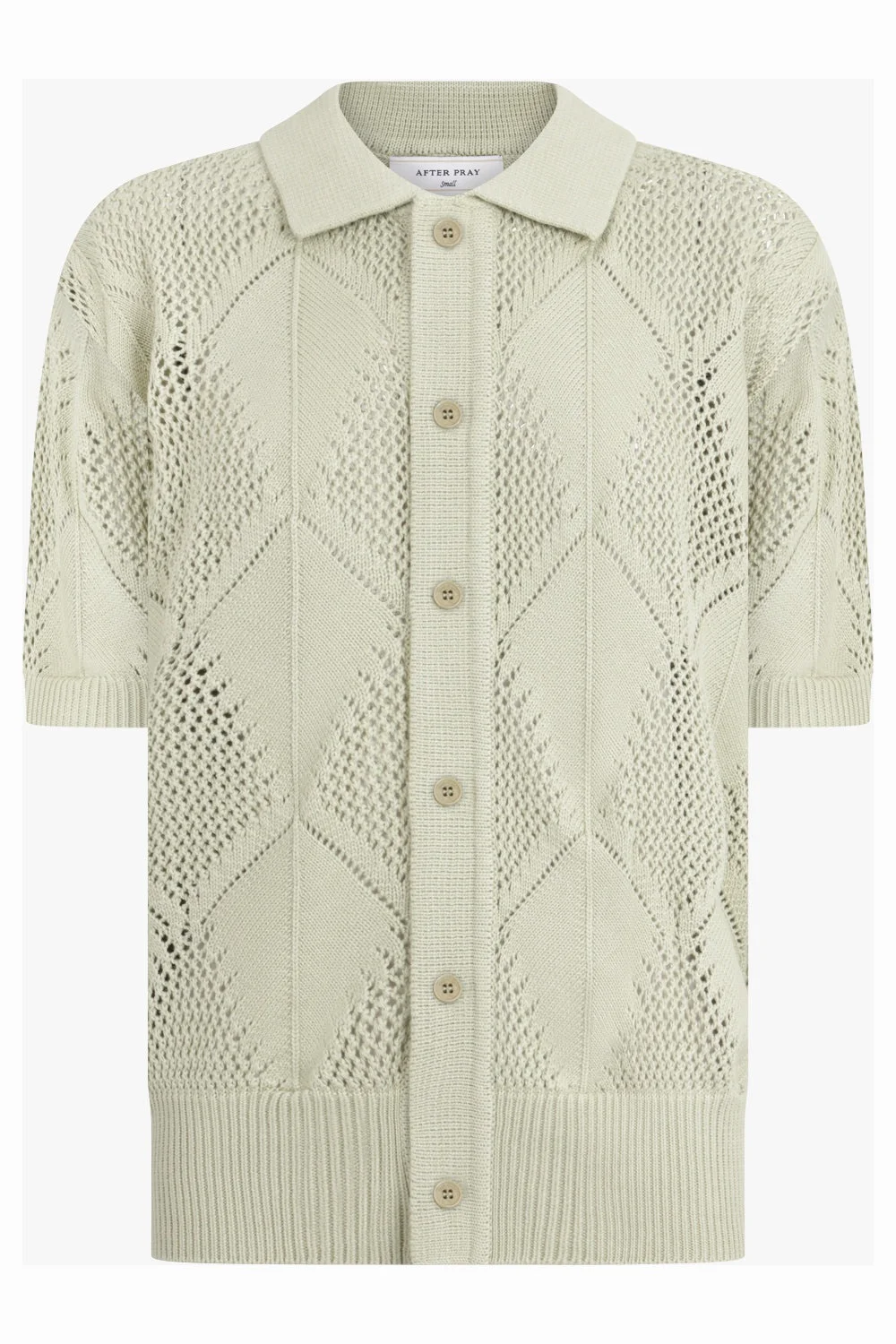 LEAF CROCHET HALF KNIT CARDIGAN | AVOCADO