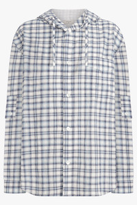 This oversized hoody shirt showcases a light blue check pattern throughout, complete with a comfortable hoodie and functional drawstring button down design. Fabrication: Cotton 100% Made in Italy Size and Fit Jay: Model is 191cm/6’02” and is wearing a size M Model Measurements: Bust: 94cm, Waist: 76cm, Hips 89cm Measurements Size S: Bust 134cm, Waist 134cm, Hips 134cm, Length 73cm Size M: Bust 140cm, Waist 140cm, Hips 140cm, Length 73cm
