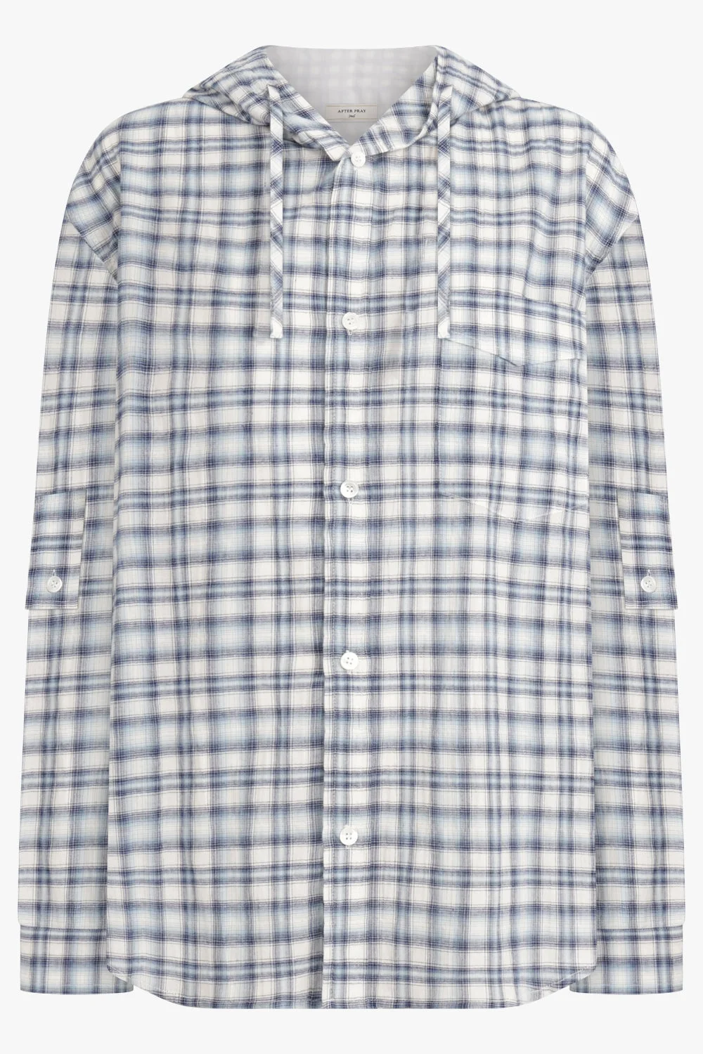 OVERSIZED CHECK HOODY SHIRTS | LIGHT BLUE