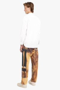 These cabin beige pants feature a straight leg cut and a drawstring waistband for ultimate comfort. The all-over print adds a touch of realistic style. Fabrication:Cotton 100% Made in South Korea Size and Fit Jay: Model is 191cm/6’02” and is wearing a size S Model Measurements: Bust: 94cm, Waist: 76cm, Hips 89cm Measurements Size S: Waist 74cm, Hips 84cm, Length 106cm Size M: Waist 78cm, Hips 112cm, Length 106cm Size L: Waist 80cm, Hips 114cm, Length 106cm