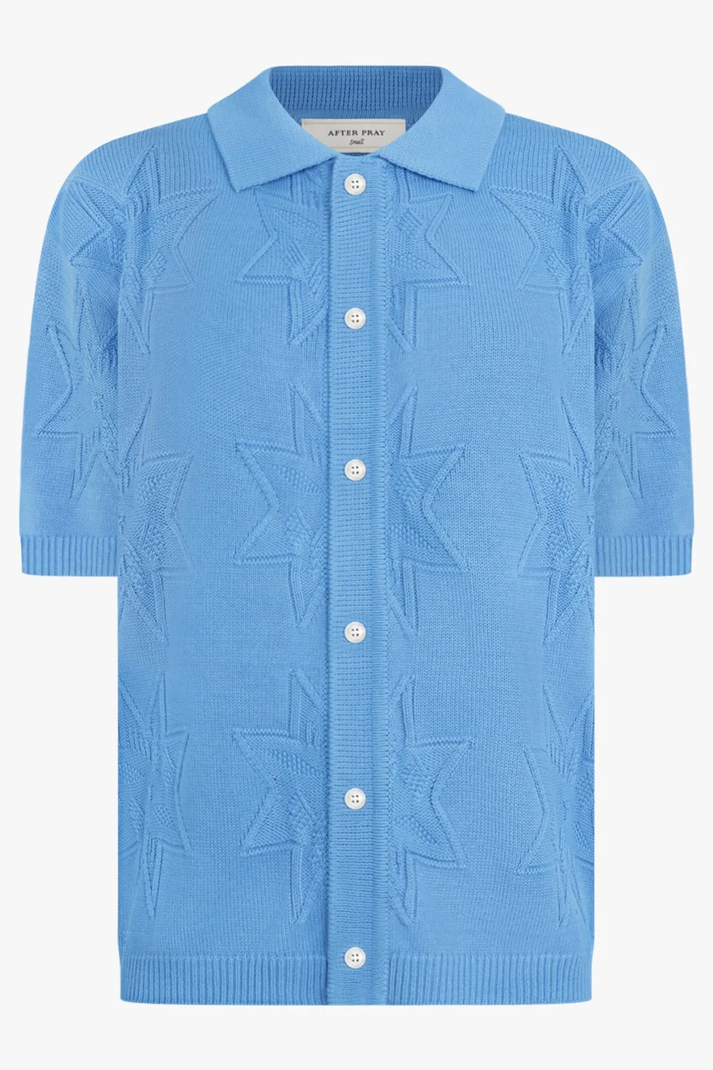 This half knit cardigan features a jacquard starfish design and is adorned with a collared neckline and ruched sleeves and hem. Fabrication: Cotton 100% Made in South Korea Size and Fit Model is 191cm/6’02” and is wearing a size M Model Measurements: Bust: 94cm, Waist: 76cm, Hips 89cm Fit is true to size. Measurements Size S: Bust 126cm, Waist 126cm, Hips 126cm, Length 63cm Size M: Bust 128cm, Waist 128cm, Hips 128cm, Length 63cm Size L: Bust 132cm, Waist 132cm, Hips 132cm, Length 63cm