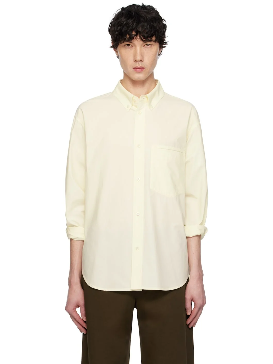 Cotton poplin shirt. · Spread collar · Button closure · Patch pocket at chest · Shirttail hem · Dropped shoulders · Single-button barrel cuffs · Box pleat and locker loop at back yoke Supplier color: Lemon 100% cotton. Made in China 251138M192000