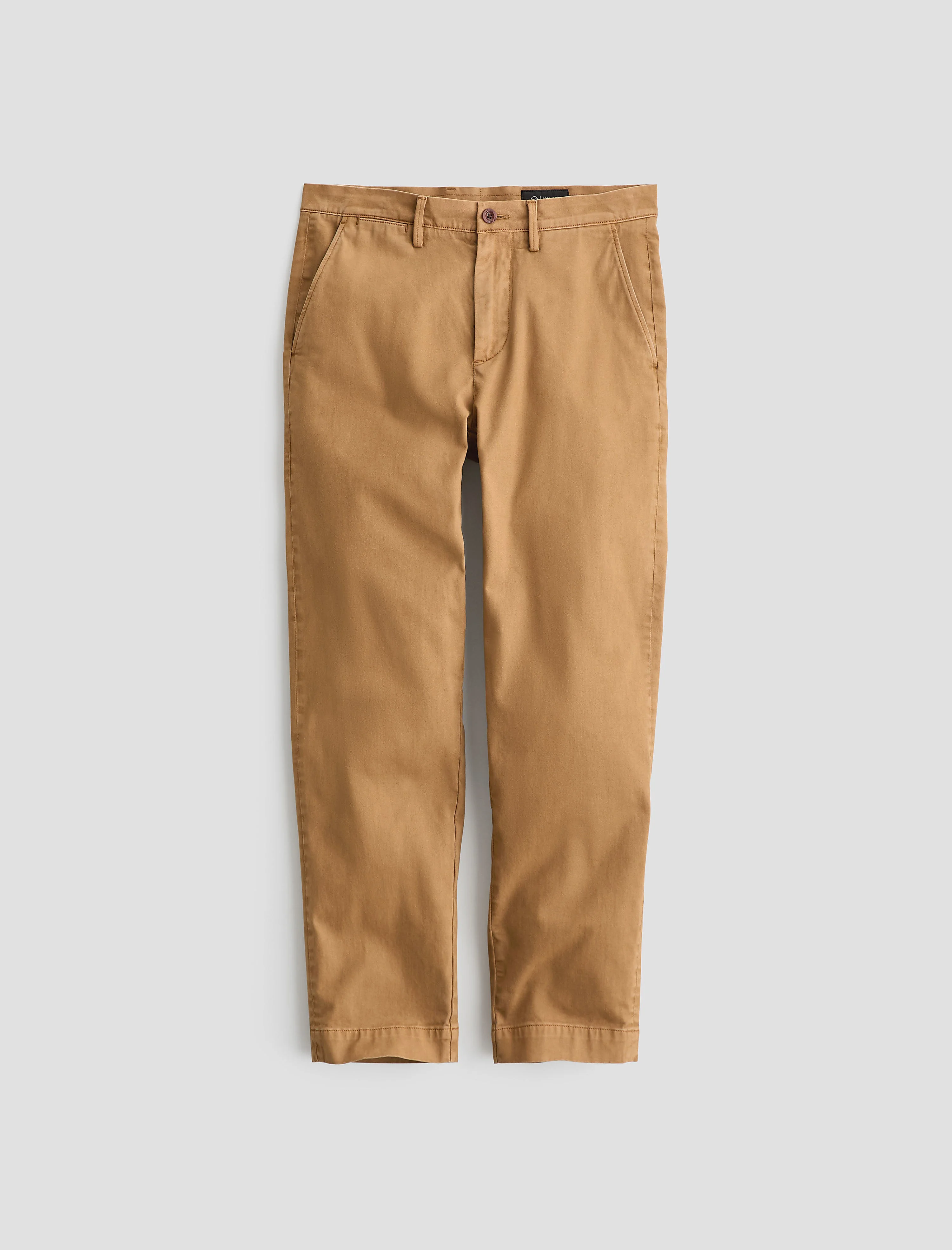 Sueded Sateen Straight Chino The Archie SUD is a straight-leg pant with a longer rise and an easy, relaxed fit through the hip and thigh. This style offers a soft, suede-like feel with added flexibility—combining classic structure with elevated comfort. Crafted from premium Sueded Stretch Sateen sourced from Italy. Done here in Sulfur Golden Hickory. DETAILS & FIT Model is wearing size 32. - Front Rise: 11 1/2" - Knee Opening: 19 1/2" - Bottom Opening: 16" - Inseam: 31" FABRIC & CARE Sueded Stretch Sateen, 8.4 Oz. 97% Cotton, 3% Elastane