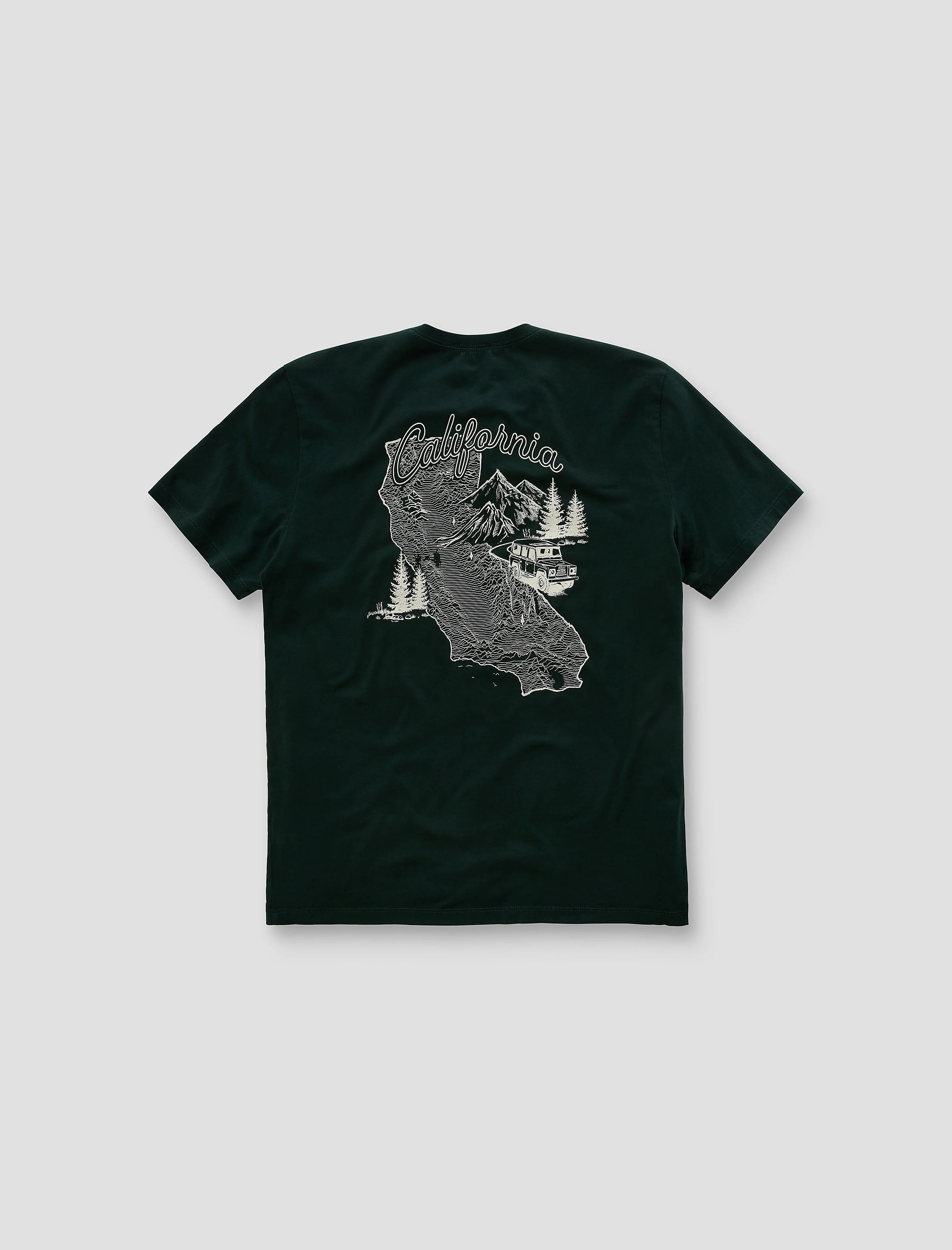 Classic Tee The Bryce Crew is your classic short-sleeve tee crafted from our cotton blend Luxe Comfort Jersey fabric, knitted with a balanced blend of S-twist and Z-twist yarn, creating an exceptionally soft hand while preventing unwanted twisting and distortion. Drawing inspiration from the Golden State, this T-shirt features contrasting chest "Los Angeles, Calif." and "Established. 2001" text accompanied by the AG logo, chest and back mountain range, pine tree, and off-roader graphics, and back "California" text accompanied by line art graphics of the state silhouette, all thoughtfully designed in-house. Designed in a rich green, Deep Alpine. DETAILS & FIT Model is wearing size M. - Body Length: 28" - Sleeve Length: 8 1/2" - Chest Width: 42" FABRIC & CARE Luxe Comfort Jersey , 6.10 Oz. 96% Cotton, 4% Spandex/Elastane