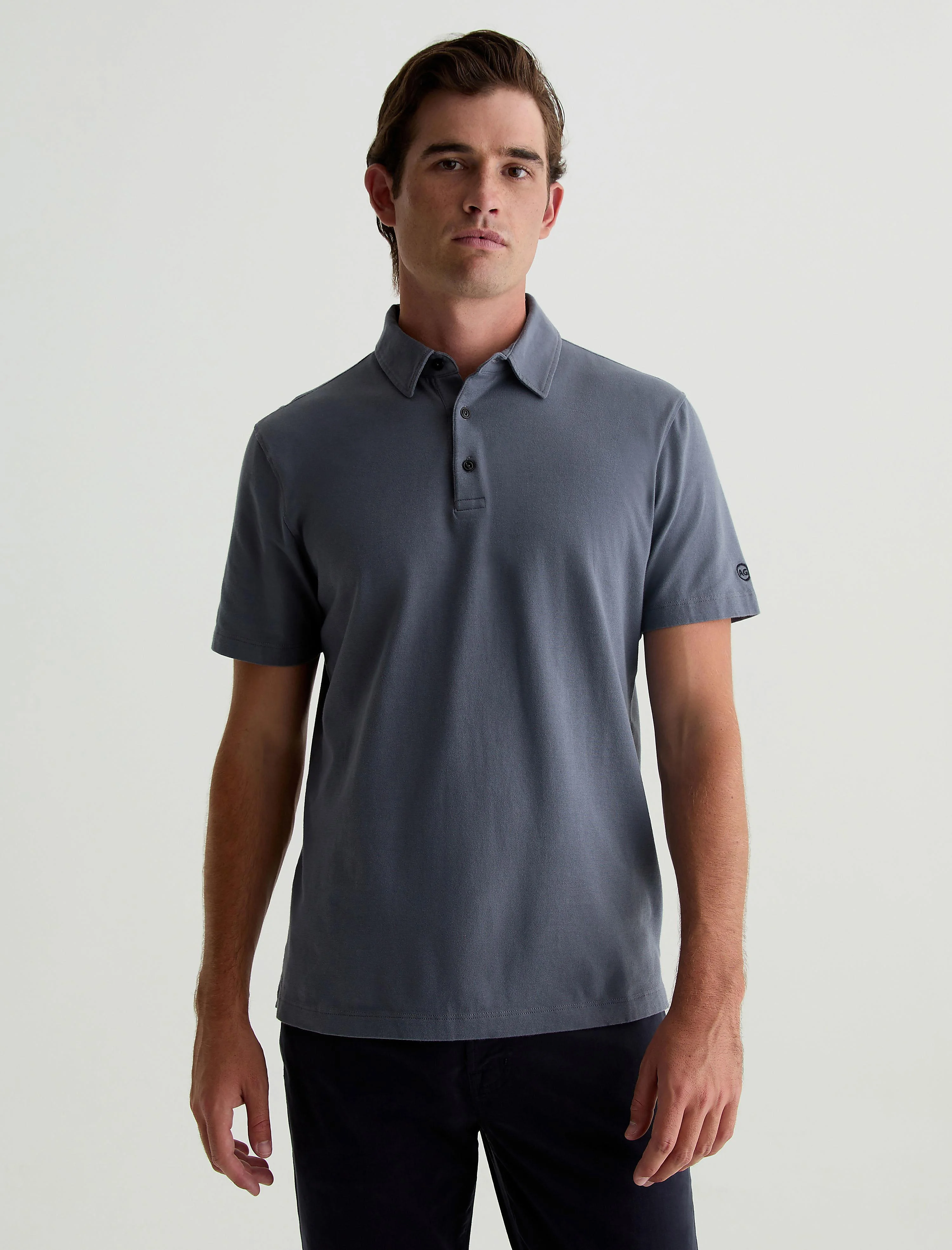 Classic Short Sleeve Polo The Bryce Short Sleeve Polo in grey is a unique addition to our Basic Essentials assortment, made with our ultra-luxe jersey fabrication. The self-collar adds a modern take on your classic polo shirt. Our Jersey Knit offers a luxurious comfort that is unrivaled—knitted with both S-twist and Z-twist yarn to sustain longevity and stability, preventing unnecessary twisting and torquing. During the production process, the S-twist yarn is spun counter-clockwise creating a right-handed twill. The Z-twist yarn works in opposition, spinning clockwise for a left-handed twill. This opposition—when working together—yields a softer, more durable fabrication and gives strength to the yarn making it more difficult to pull apart. Designed in 100% Cotton. DETAILS & FIT Model is wearing size M. - Body Length: 28" - Sleeve Length: 9" - Chest Width: 42" FABRIC & CARE Light Cotton Jersey, 100% Cotton