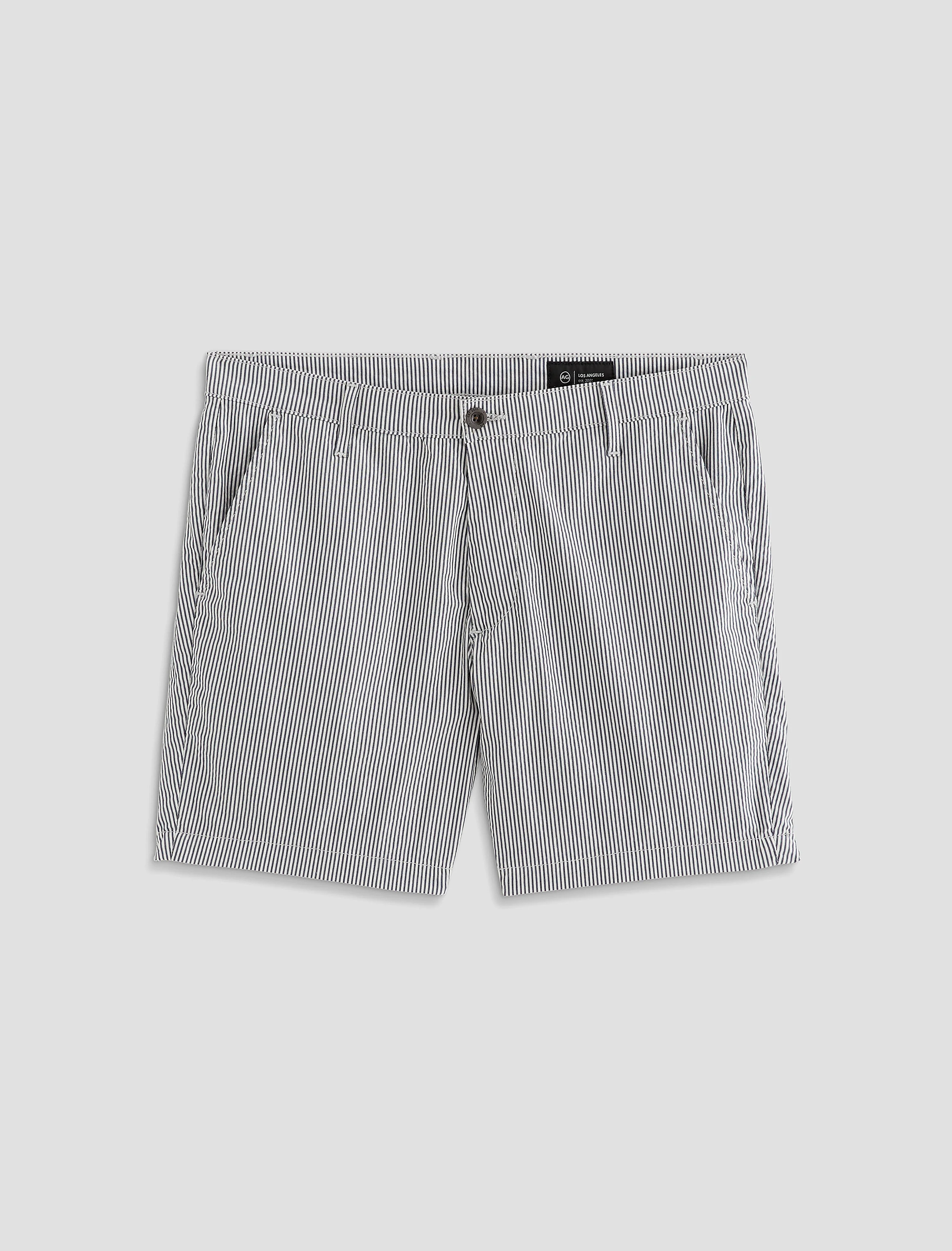 Slim Short The Cipher Short in Charcoal Strip is seersucker fit designed with a mid-rise waist and a slim fit, it offers a polished look that effortlessly hits at mid-thigh and a luxurious soft finish. DETAILS & FIT Model is wearing size 32. - Front Rise: 10 1/4" - Bottom Opening: 20 1/2" - Inseam: 7" FABRIC & CARE Easy Stripe Seersucker, 69% Cotton, 28% Nylon, 3% Elastane