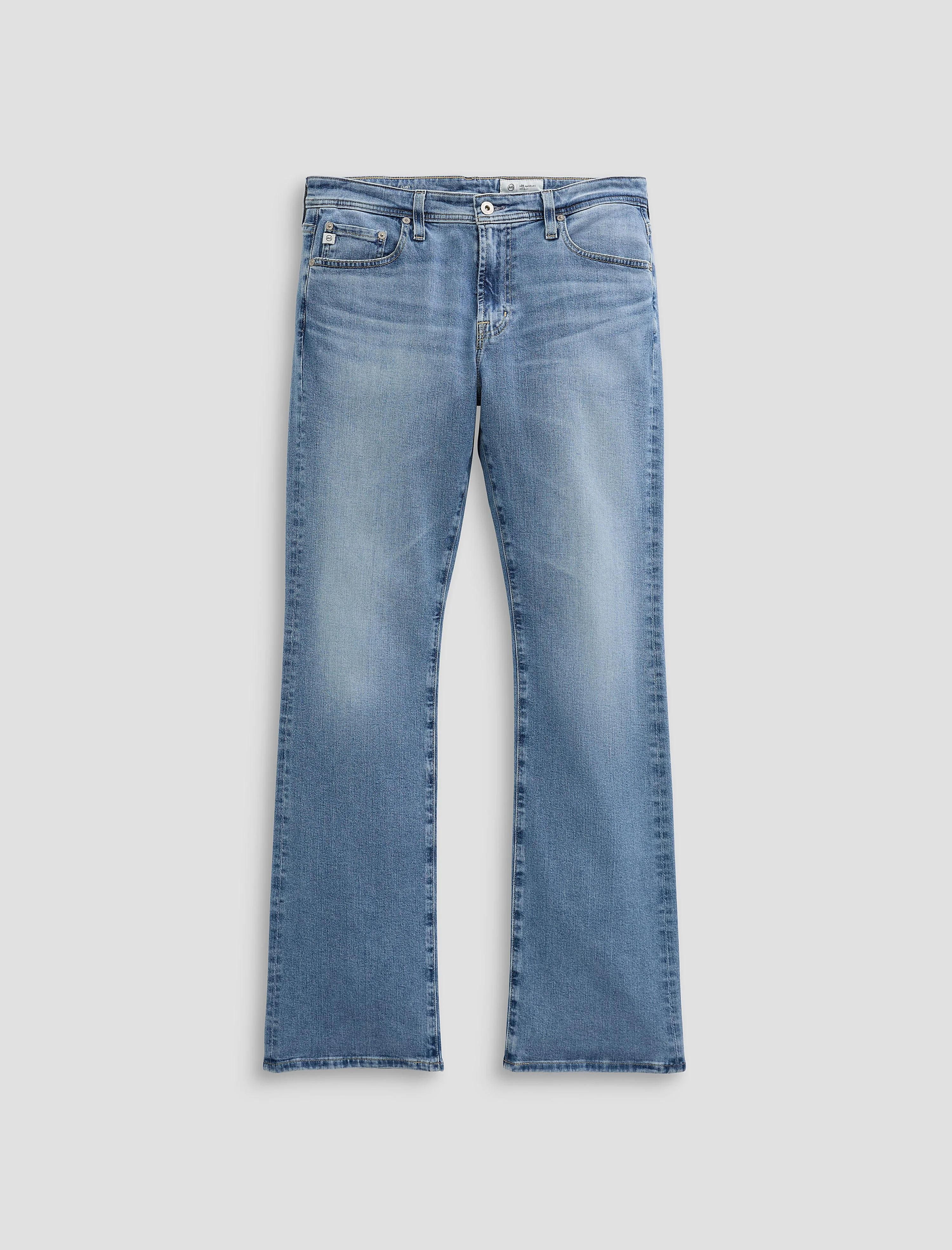 Classic Bootcut The Clint is a classic bootcut jean. Crafted from AG Cloud Soft Denim™, Hyper Soft Indigo Denim, 9.4 Oz. for superior comfort and style. Designed with classic five-pocket styling and premium construction for everyday wear. Shown here in saltillo light wash wash. DETAILS & FIT Model is wearing size 32. - Front Rise: 10 1/2" - Knee Opening: 16 1/2" - Bottom Opening: 18 1/2" - Inseam: 32" FABRIC & CARE AG Cloud Soft Denim™, Hyper Soft Indigo Denim, 9.4 Oz. 93% Cotton, 6% Polyester, 1% Elastane