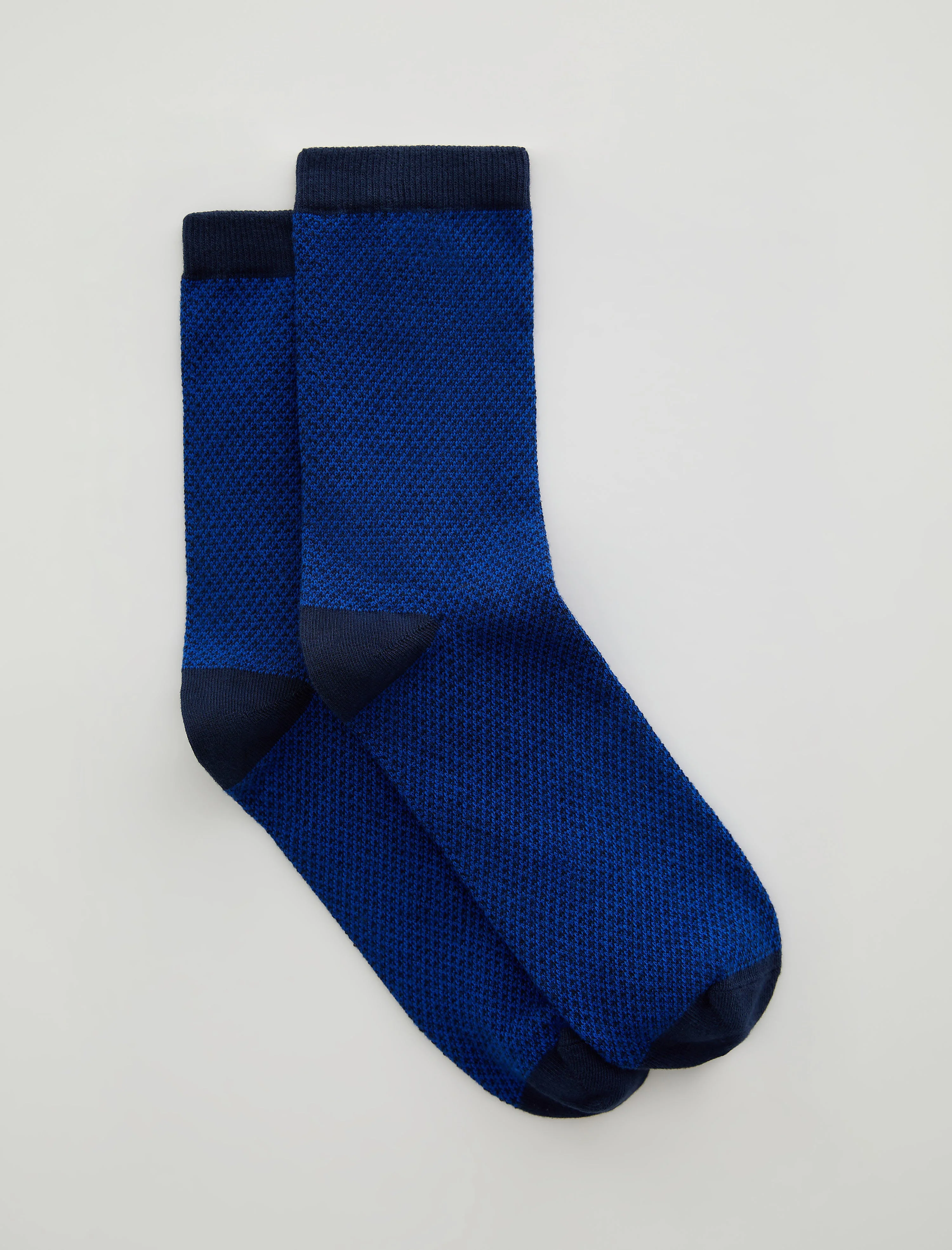 Unisex This sock is our classic crew sock. Featuring a check pattern, this pair has been knitted from a comfortable cotton blend and ribbed through the ankles. DETAILS & FIT - Small: W 4" - 6" - Medium: W 6" - 10" / M 6" - 8" - Large: W 10" - 13" / M 8" - 12" FABRIC & CARE Fine Cotton Yarn, 48% Nylon, 38% Cotton, 14% Elastane
