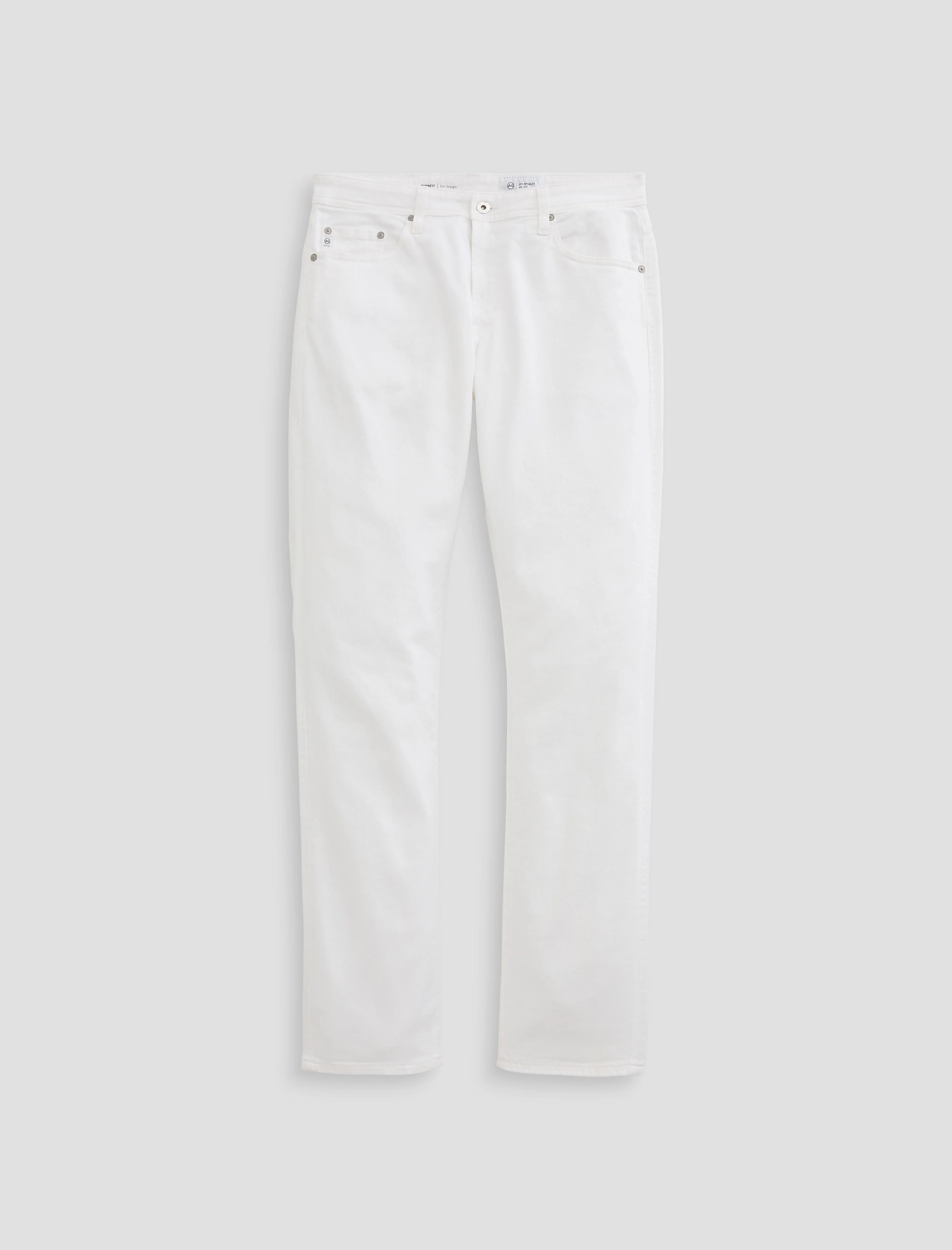 Slim Straight Everett is a slim straight men's jean made from ultra-soft white denim. The style has a mid-rise waist and a straight fit that’s relaxed from hip to the knee before slightly tapering at the leg opening. These men’s slim straight jeans are designed in stretch-blend AG Cloud Soft Denim™. This special left-hand twill fabric allows the yarns to gently relax and untwist for a supple feel that gets even softer with wear. DETAILS & FIT Model is wearing size 32. - Front Rise: 10 1/4" - Knee Opening: 16 1/2" - Bottom Opening: 15" - Inseam: 33" FABRIC & CARE AG Cloud Soft Denim™, Hyper Soft Bull Denim, 8.7 Oz. 93% Cotton, 6% Polyester, 1% Elastane